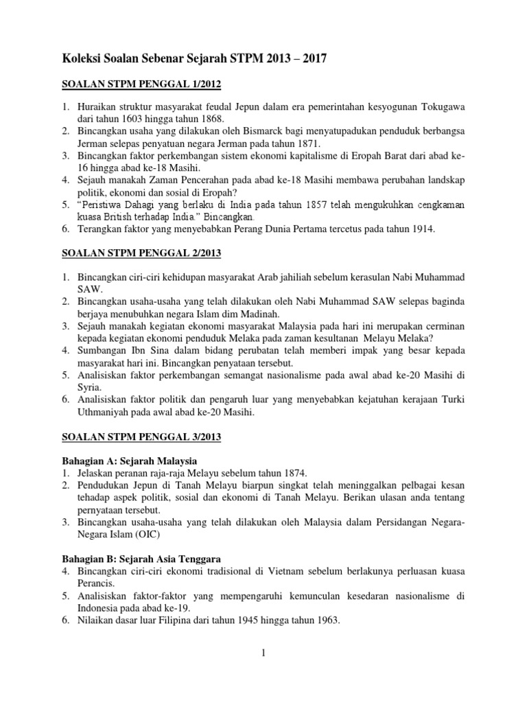 Revisi Akhir Semester 3 Malaysia Asia Tenggara Soalan Sebenar Sejarah Penggal 3 STPM 2013 STPM 2015. Lets see what the STPM Sejarah syllabus looks like in Penggal 2. Sejarah dunia 1500-1955 dua jam pusat tingkatan enam smk agaseh.