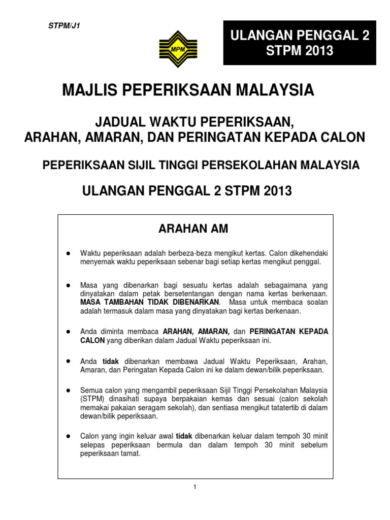 Jadual Peperiksaan Ulangan Penggal 2 Stpm 2013 Pdf